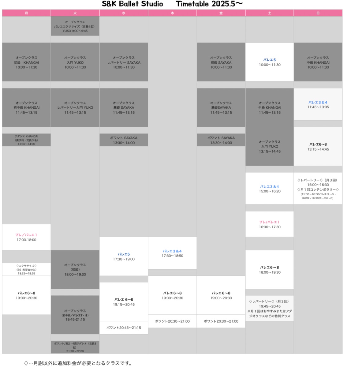 月謝+2,000円(1.5時間クラス、バレエ6以上)
